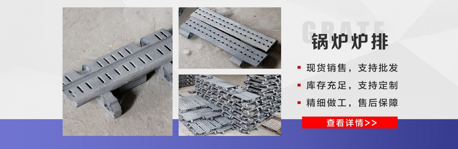 麗新機械配件廠位于“江北水城”之稱的聊城。公司主要銷售:鍋爐爐門,爐篦子,爐排片,鍋爐爐排,省煤器管,鍋爐風帽,鍋爐配件等多種產品,公司堅持以市場為導向、以誠實守信為經營理念,竭誠為廣大客戶服務!  爐排是鍋爐或工業爐中堆置固體燃料并使之有效燃燒的部件。整個爐排主要包括框架和爐排片兩個部分。爐排片通常用鑄鐵制造,組裝后片與片之間保持必要的通風縫隙,并且往往還在爐排下邊設置可以調節(jié)風量的分隔的通風室,以便空氣通過縫隙進入燃料層燃燒。燒盡后的灰渣用人工或機械方法排出。爐排有固定式、移動式、往復式、振動式和下飼式等類型。  鍋爐爐排操作實現了機械化,減輕了司爐工的勞動強度。快裝出廠,到使用現場后,裝接閥門儀表,鼓、引風機、煙風管道、省煤器、除塵器、出渣機。上煤機及水電路等即可運行,且具有起動生火快等特點。  公司憑借豐富的規(guī)格品種,過硬的質量,合理的價格,完善的服務,不斷地受到新老用戶及業內人士的肯定和信任,我們本著及用戶之所及,想用戶之所想的服務宗旨不斷地拼搏,進取,在此對多年來支持我們的各行各業的新老朋友表示由衷的感謝!  我公司的理念:“誠信、合作、互利、雙贏”!以最大的努力滿足客戶的需求。...